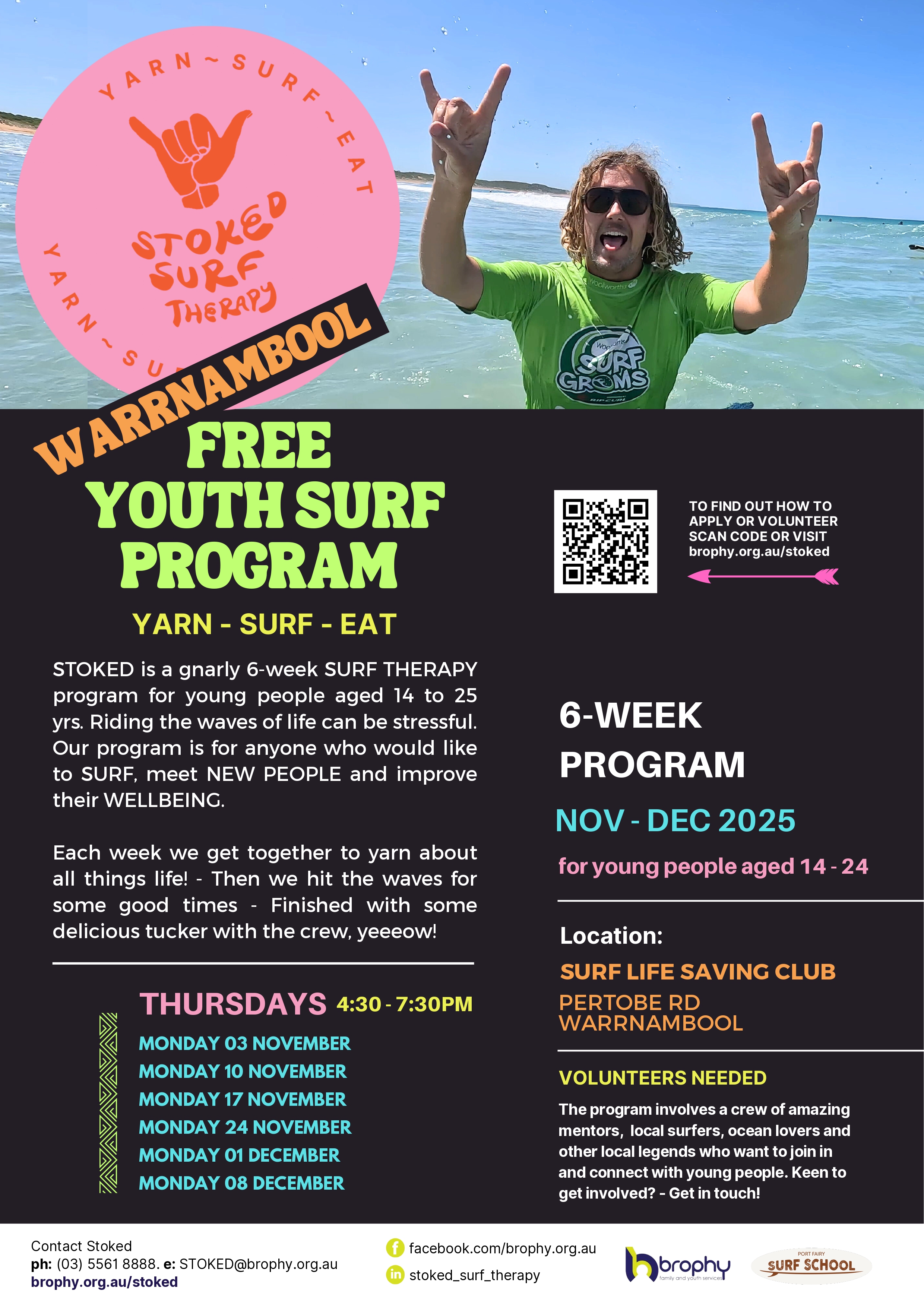 STOKED is a gnarly surf therapy program for young people aged 14 to 25.
