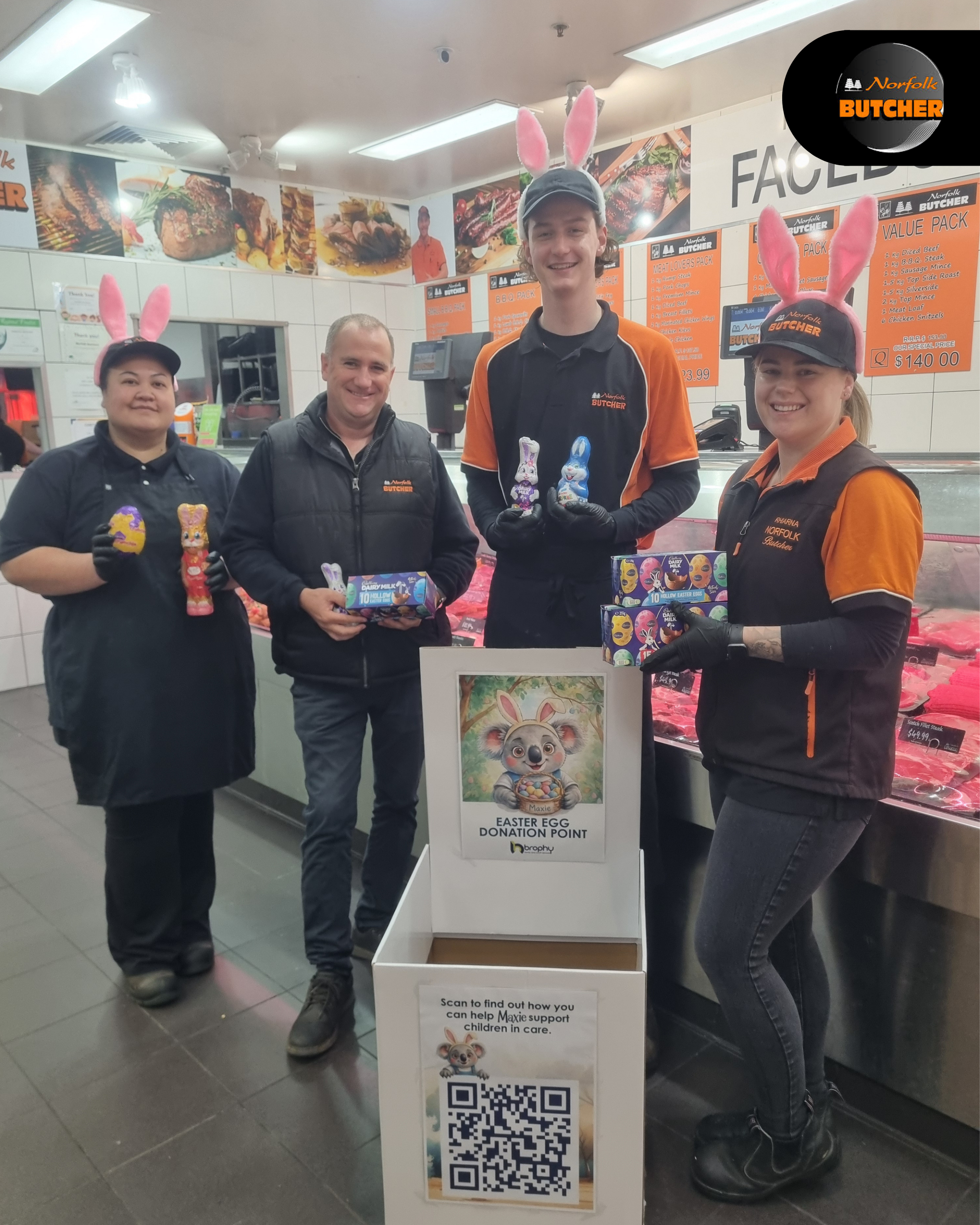 With drop-off points at Fit After Forty, LevelUp, Norfolk Butchers and Breakwater Insurance Brokers, the community showed up in a big way. Box after box of Easter eggs came in, all with one purpose: to make sure no child living in foster or kinship care misses out this Easter.